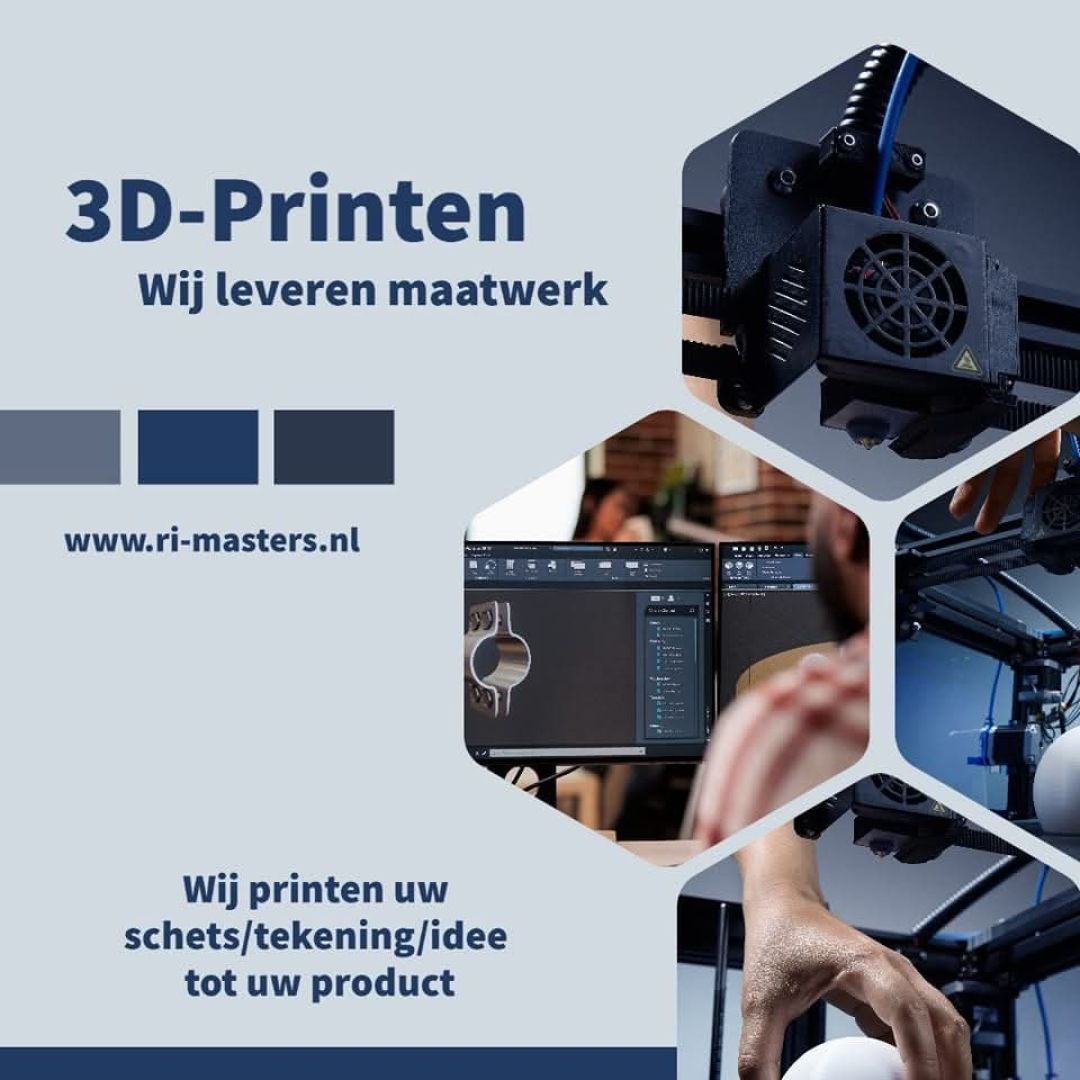 RI-Masters staat bekend om het 3D-printen. Wij (Henk en Gerard), zijn deze onderneming gestart. Wij helpen uw graag om unieke ideeën werkelijkheid te maken met 3D-printen. Of heeft u iets unieks nodig hebt voor uw bedrijf, een niet te bestellen onderdeel of gewoon een idee hebt dat je wilt uitproberen, wij draaien er onze hand niet voor om. Met kwaliteit-printers en onze technische achtergrond, maken we alles op maat. Van prototypes tot onderdelen, bij RI-masters.nl krijgt u precies wat u nodig hebt! Geen gedoe, een creatief brein en slimme techniek en wij helpen uw project een stap verder te brengen. Neem gerust contact met ons op! Wij helpen u graag verder!